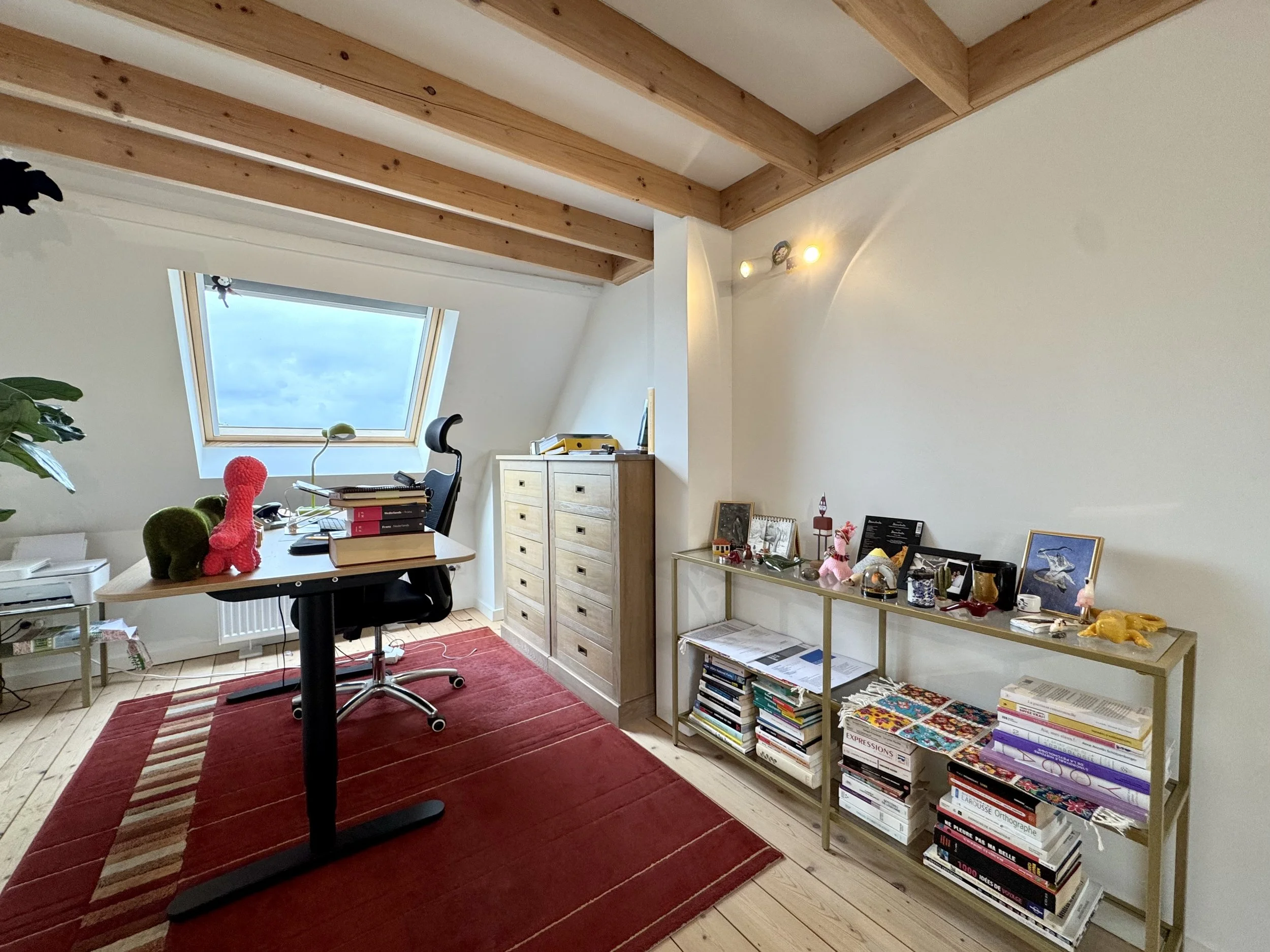 De dakverdieping werd ingericht met een mezzanine en kan dienst doen als slaapkamer of hobbykamer of soortgelijk.