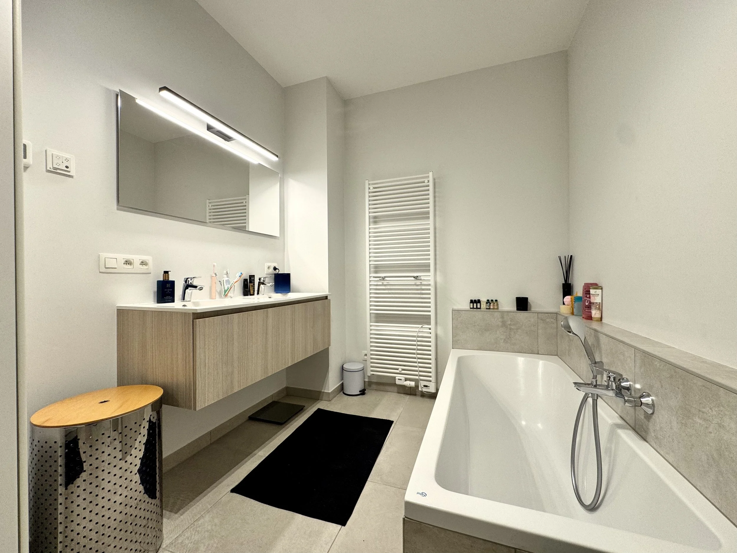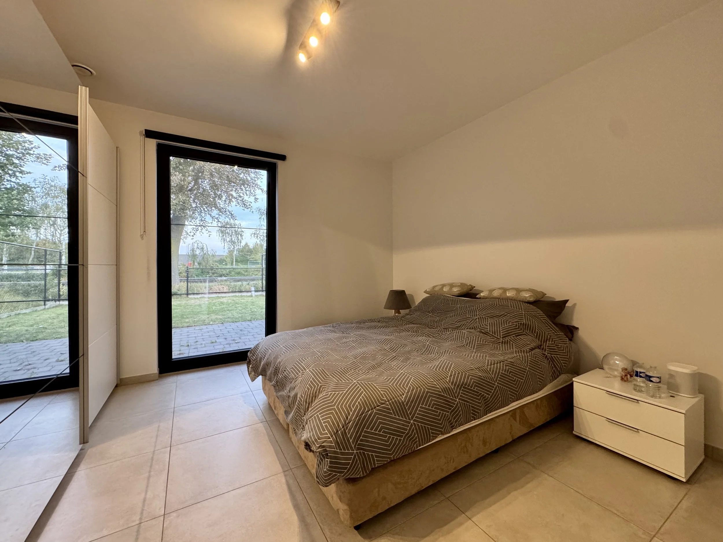 Op een perceel van 575m2 met oprit, voorzien van een grote loods met hoge sectionaalpoort en aparte inkom naar het woongedeelte. De woning bestaat uit: inkomhal, vestaire en toilet, zeer grote leefruimte met knappe open keuken met eiland, grote dubbele schuiframen die uitgeven op het terras met zicht op De Leie. Nachthal met 4 volwaardige slaapkamers, badkamer met inloopdouche, bad en dubbele wastafel. Alsook een berging en tweede toilet. De bedenenverdieping geeft uit een een tweede terras met tuin en rechtstreekse toegang naar het wandel- en fietspad.