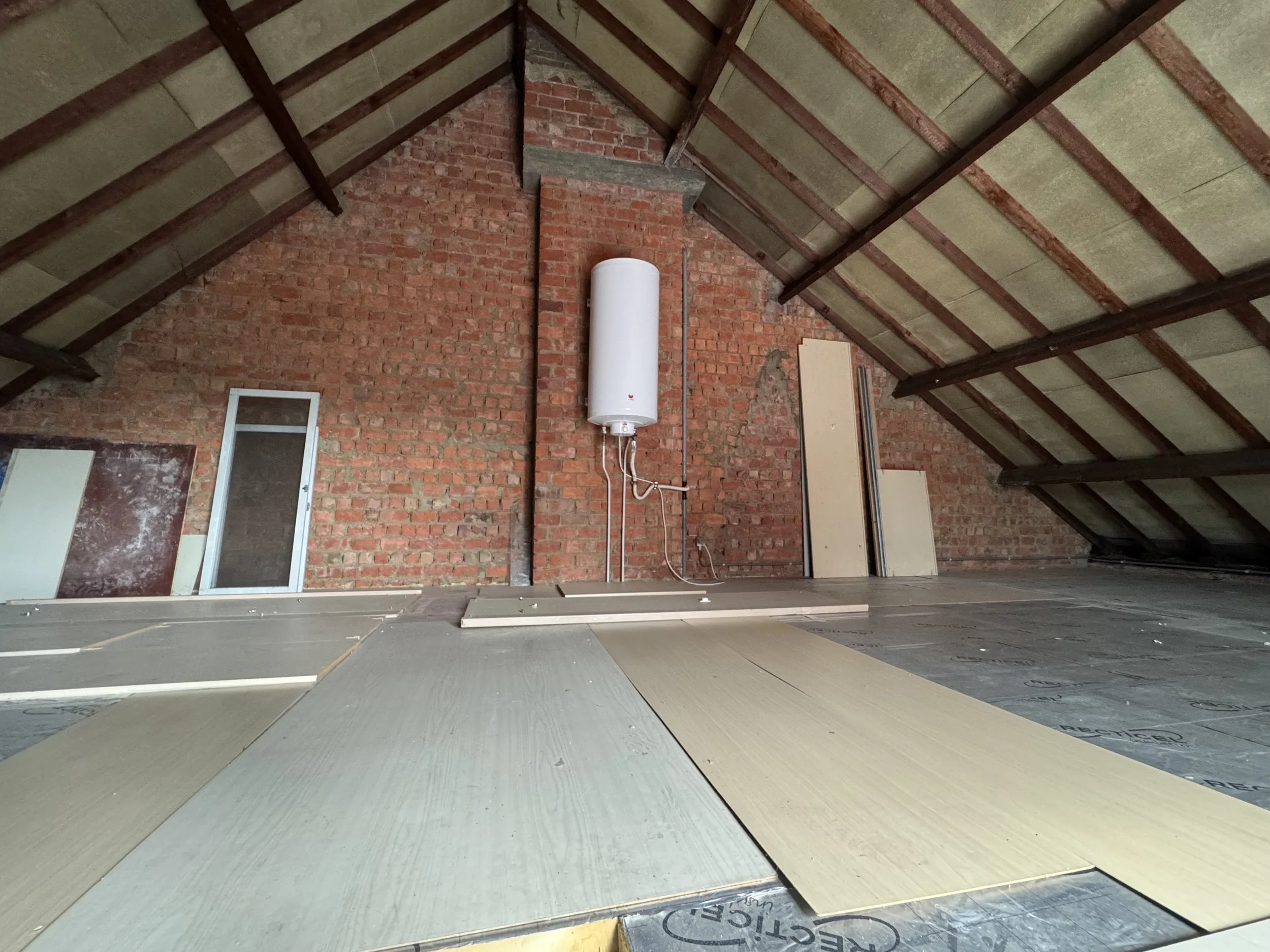 De woning bestaat uit een inkomhal met gastentoilet, een lichtrijke en ruime woonkamer, een keuken met zicht op de tuin (koelkast en vaatwasser niet inbegrepen, maar gratis over te nemen) en een praktische wasplaats. Achteraan is er een gezellige tuin met terras, een oprit met garage en een overdekt afdak, ideaal voor fietsen of extra bergruimte. Op de eerste verdieping bevinden zich drie slaapkamers (twee ruime en één kleinere), een berging en een badkamer met inloopdouche, dubbele lavabo en toilet. Daarnaast is er een grote opbergzolder aanwezig. Verwarming op stookolie.