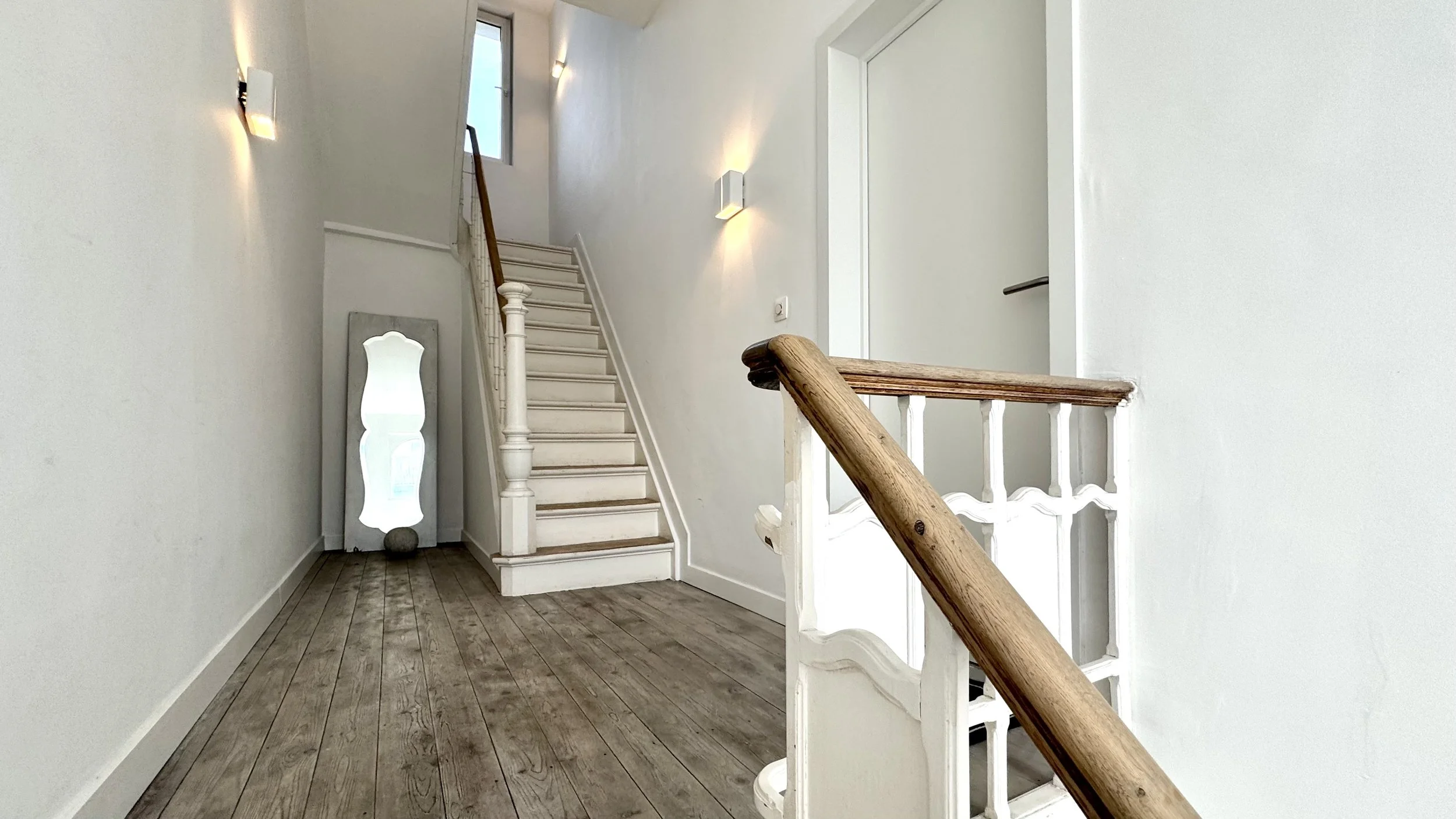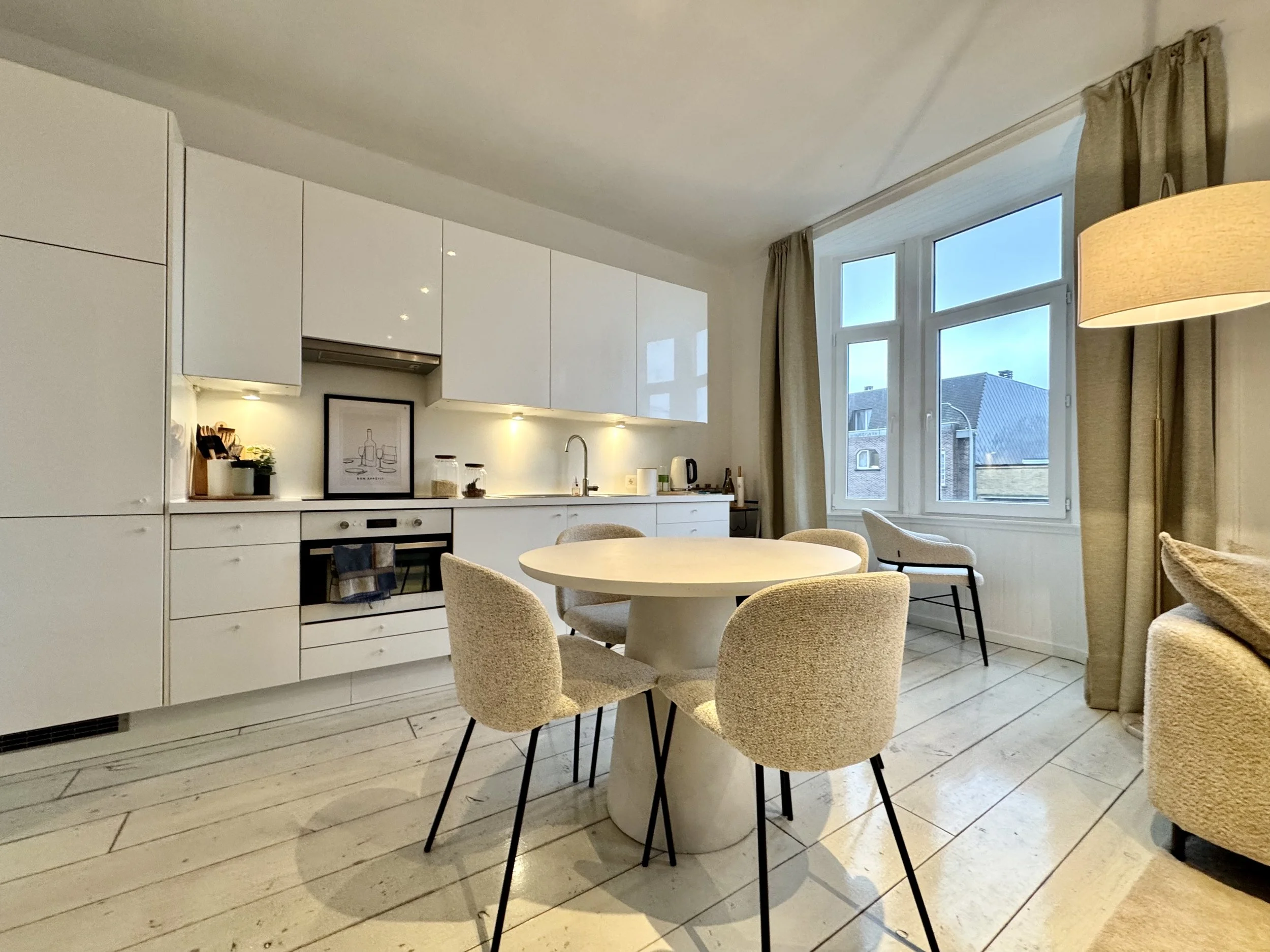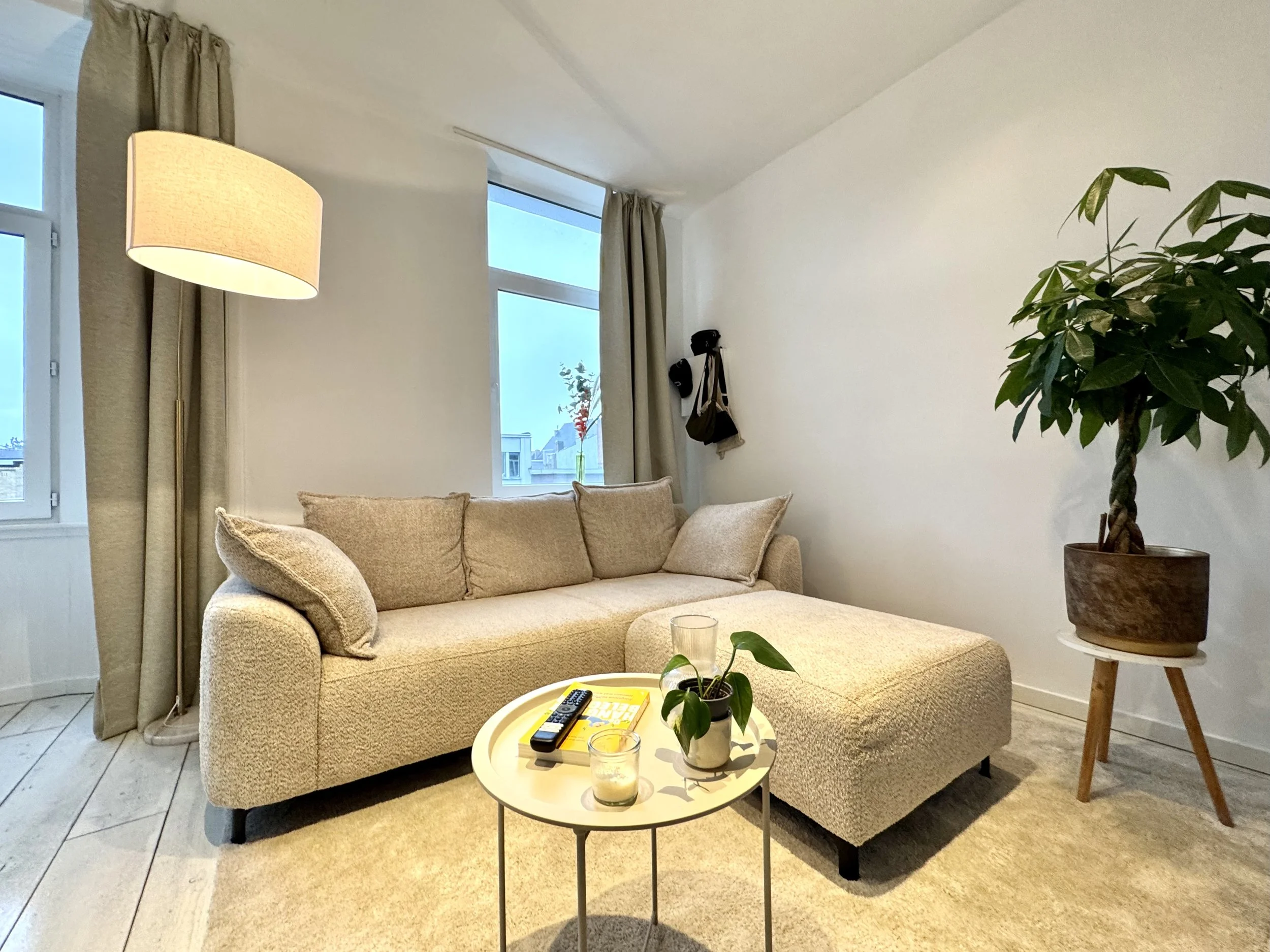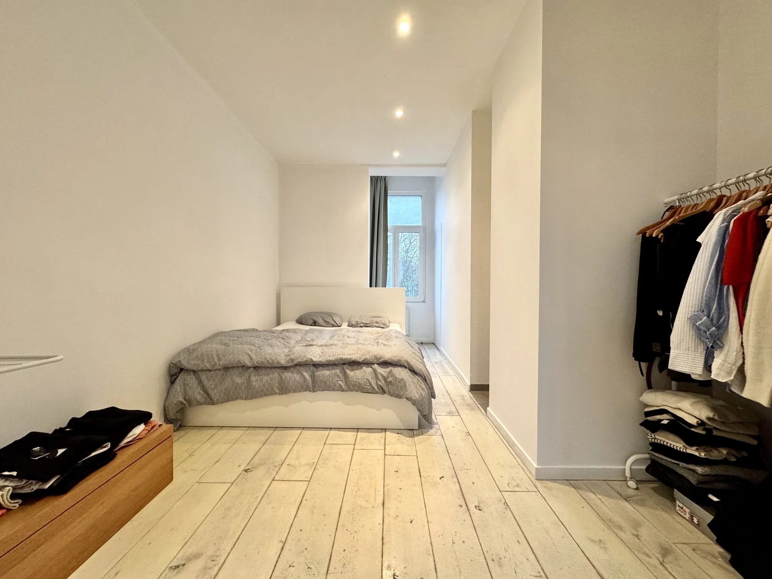 Deze studio bevindt zich op de tweede verdieping in een karaktervol pand dat volledig werd gerestaureerd. De studio zelf kreeg een stijlvolle afwerking en bevindt zich in perfecte staat. Het omvat een charmante en lichtrijke leefruimte met moderne open keuken (met toestellen alsook ingebouwde wasmachine), slaapruimte (plaats voldoende voor een dubbel bed, en kleerkast) met achteraan zicht op de tuin (hoort niet bij deze studio), toilet en badkamer met douche.