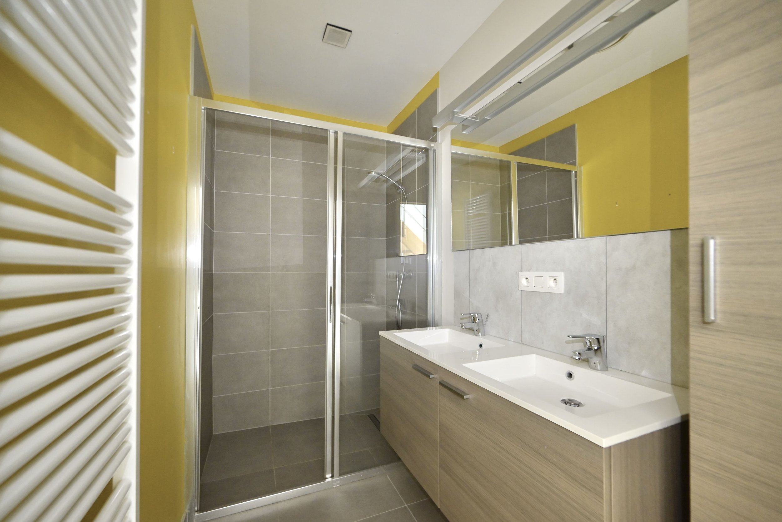 Het betreft een recente, energiezuinige woning voorzien van vloerverwarming op alle verdiepingsvloeren. De indeling is als volgt: een inkom, toilet, berging/wasplaats, woonkamer met groot schuifraam naar het terras en de private tuin (met tuinberging), keuken met apparatuur waaronder koelkast en diepvriezer, oven, vaatwasser, etc. De eerste bovenverdieping omvat 2 slaapkamers met een badkamer met douche, een apart toilet, en een 3de (master)bedroom met ingemaakte kasten en aansluitende 2de badkamer met bad/douche. De derde verdieping omvat een ruime 4de slaapkamer en technische berging.