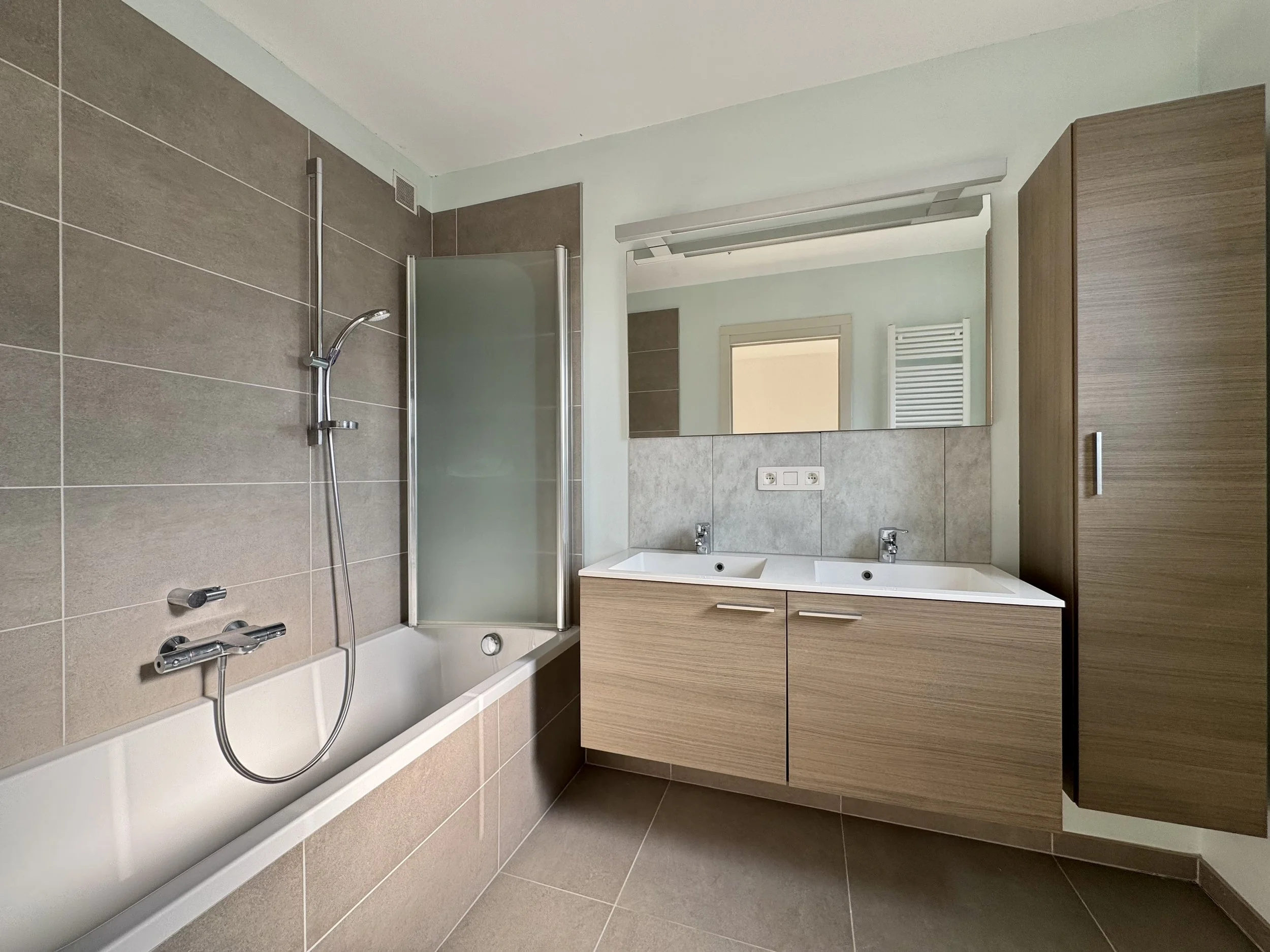 Er zijn heel wat troeven waaronder een privatieve parkeerplaats met laadpaal, een gemeenschappelijke fietsenberging en een gemeenschappelijke speeltuin.
